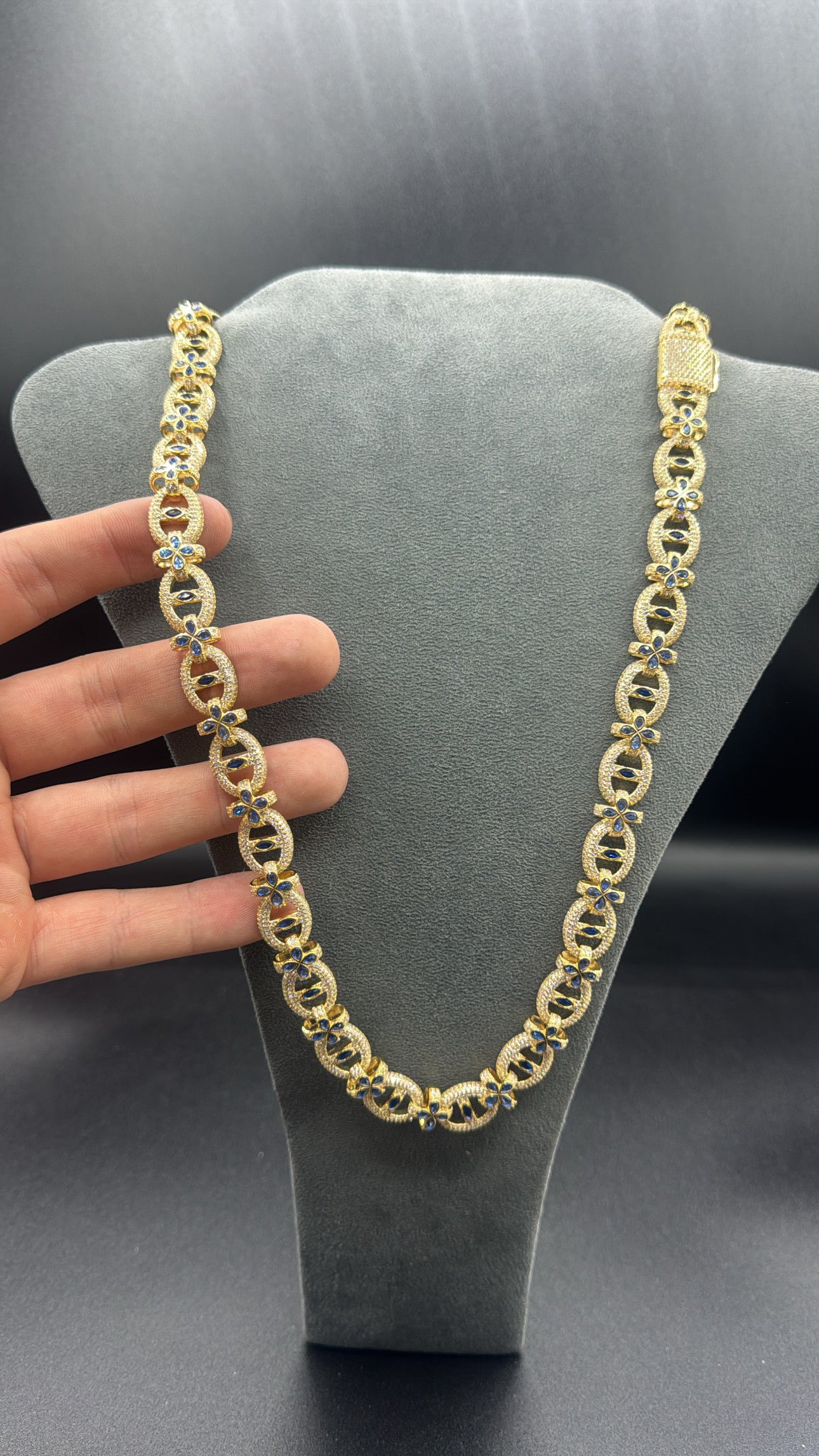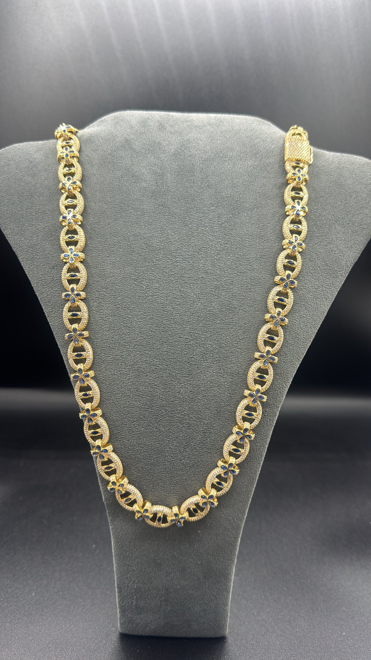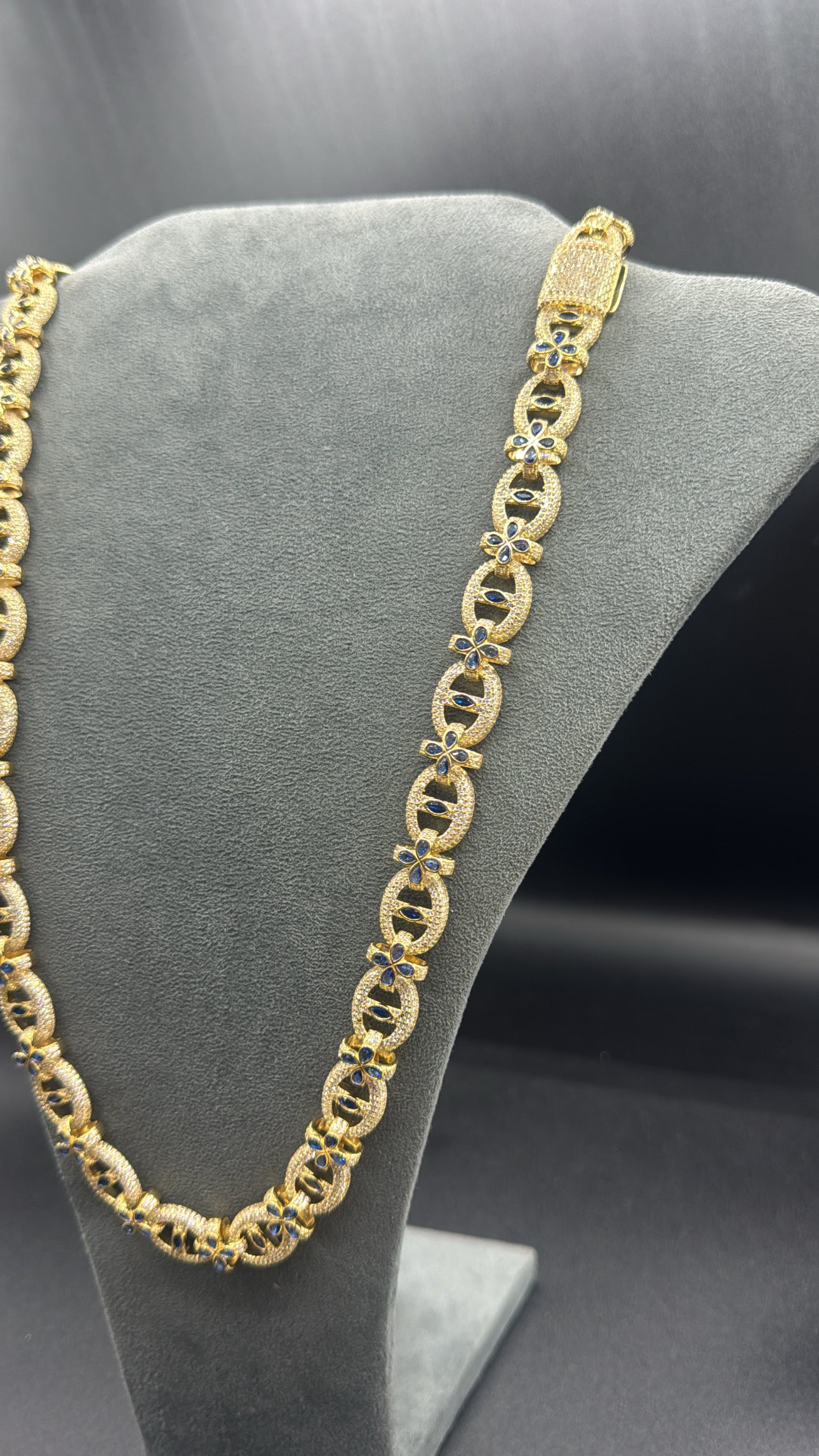 Increíble cadena de la nueva colección en joyería Iglesias, modelo siner en plata chapada con circonitas azules,60cm de largo y 13.34mm de ancho .