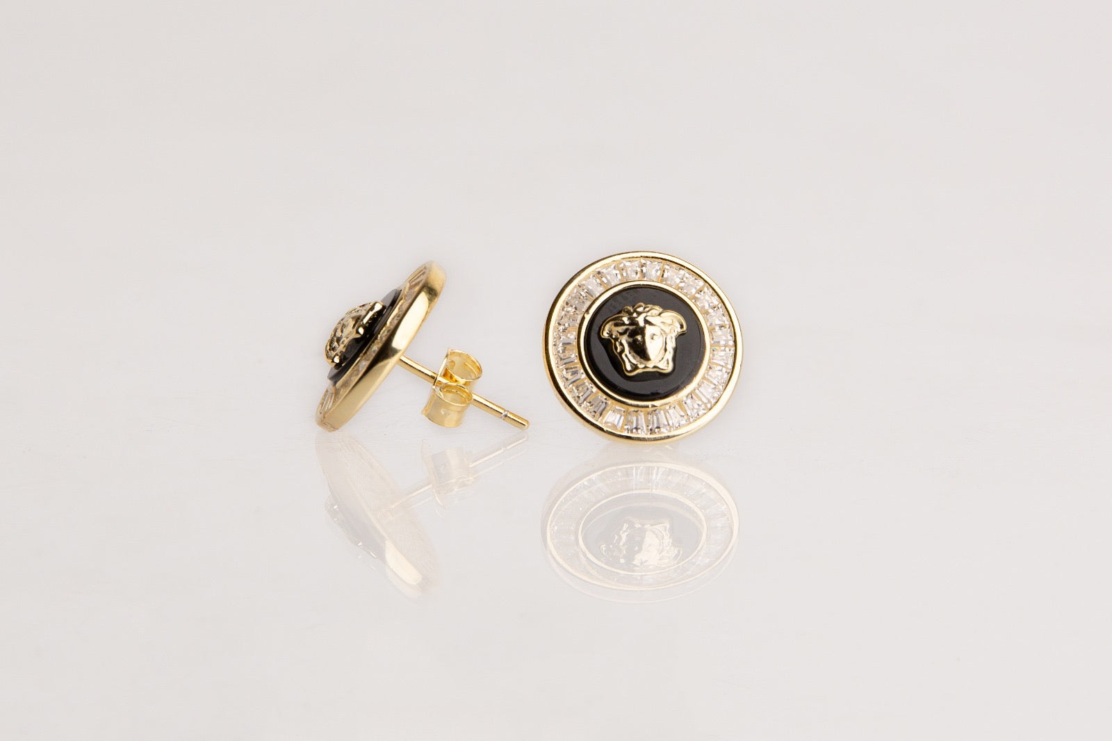 Pendientes de plata chapados en oro, con cierre de presión y piedras (circonitas).