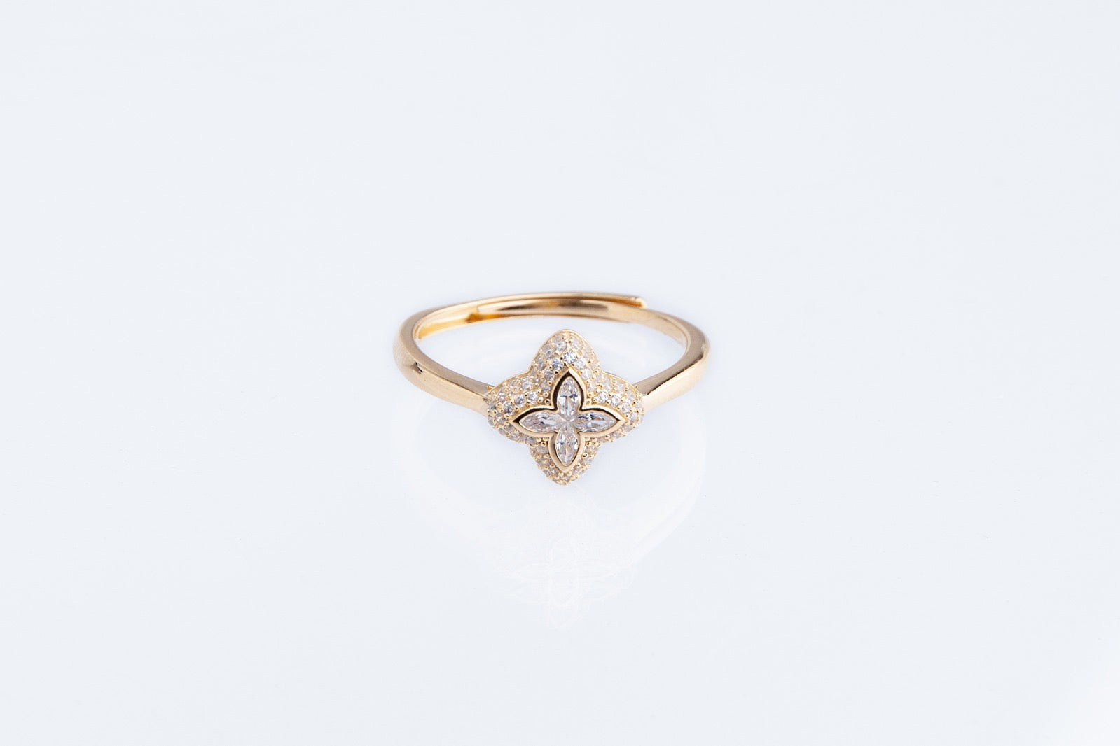- Anillo flor chapado blanco