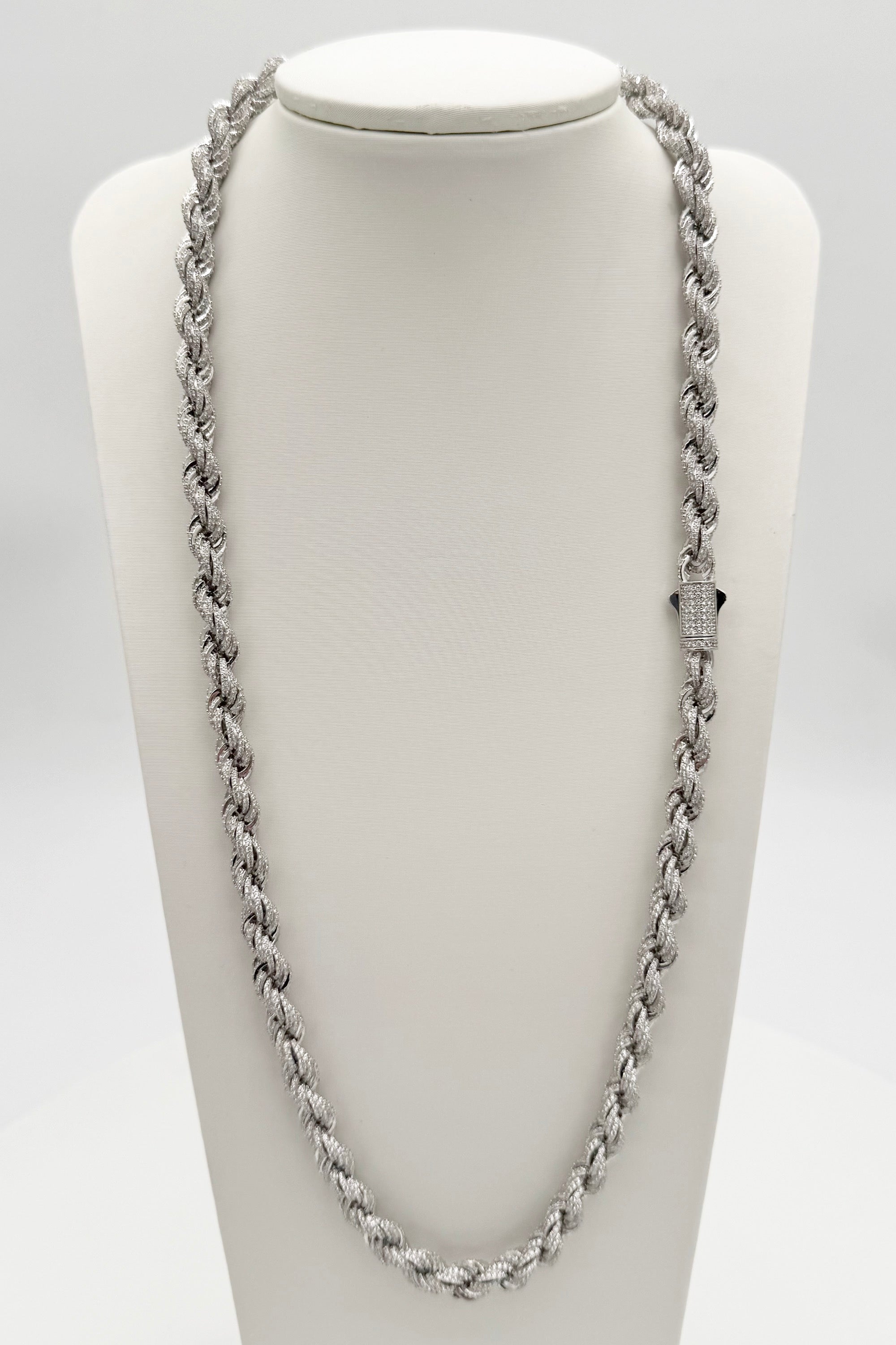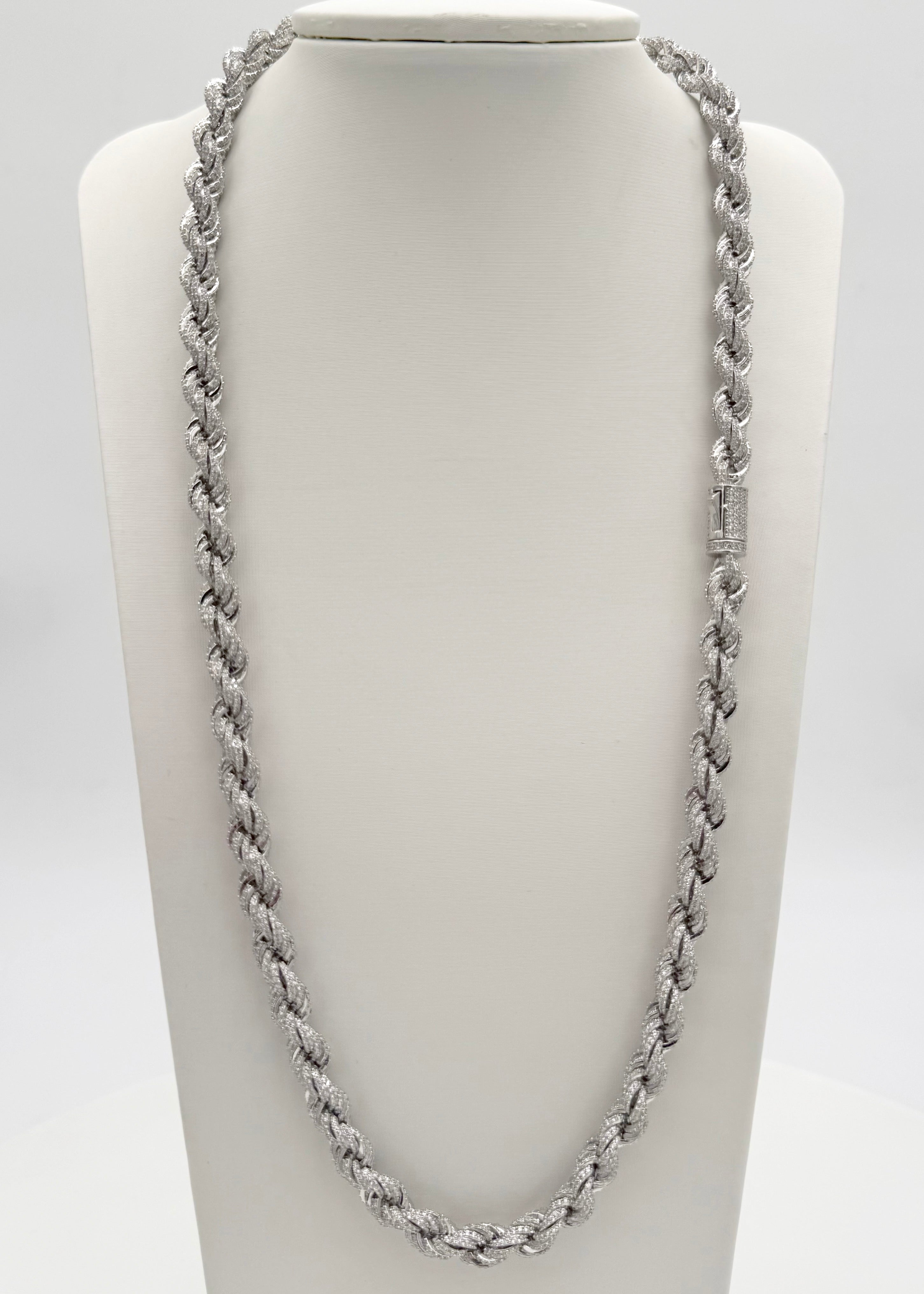 Cordón de plata con circonitas incrustadas y cierre de piedra 8 milímetros peso 100 gramos