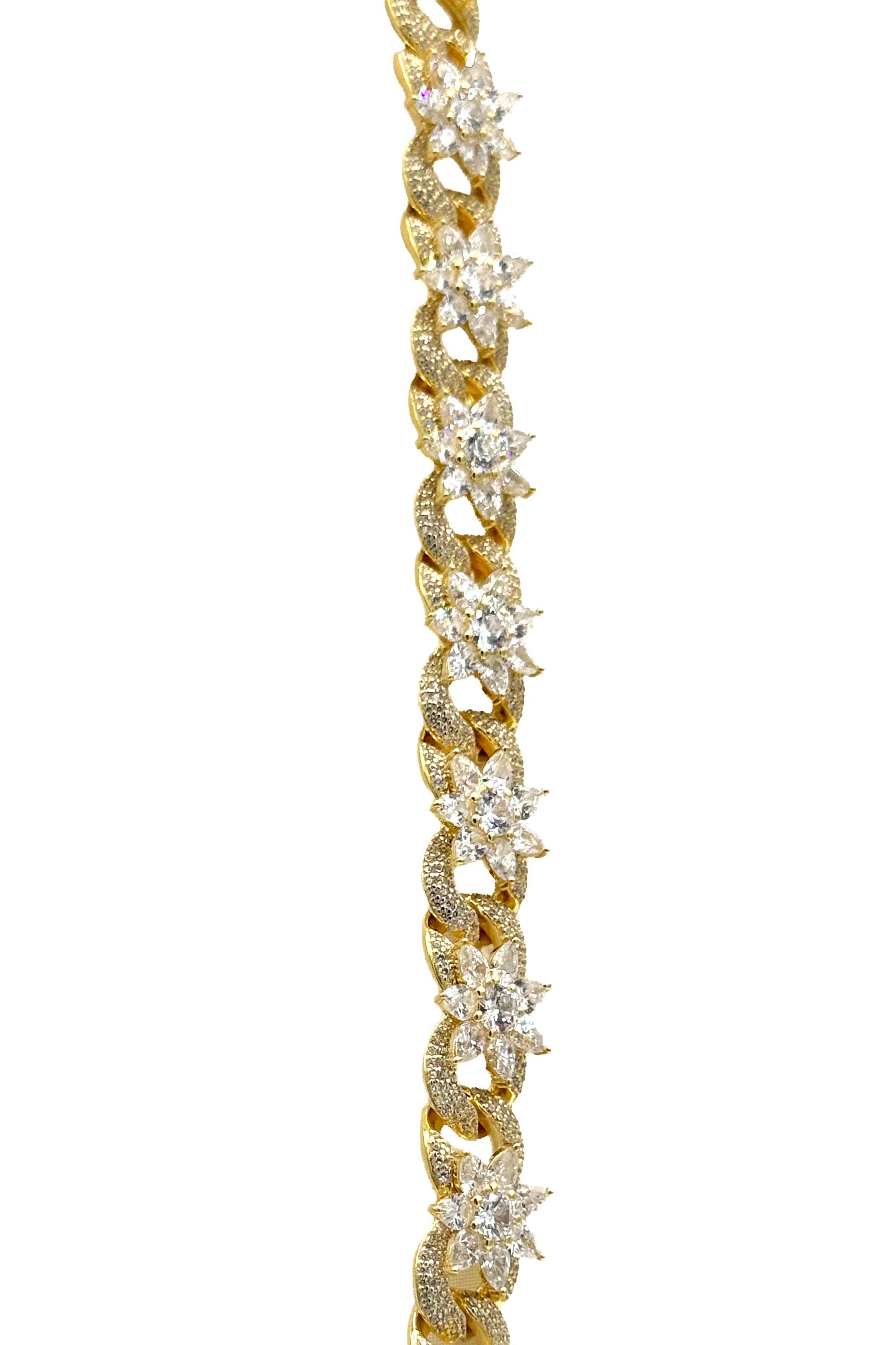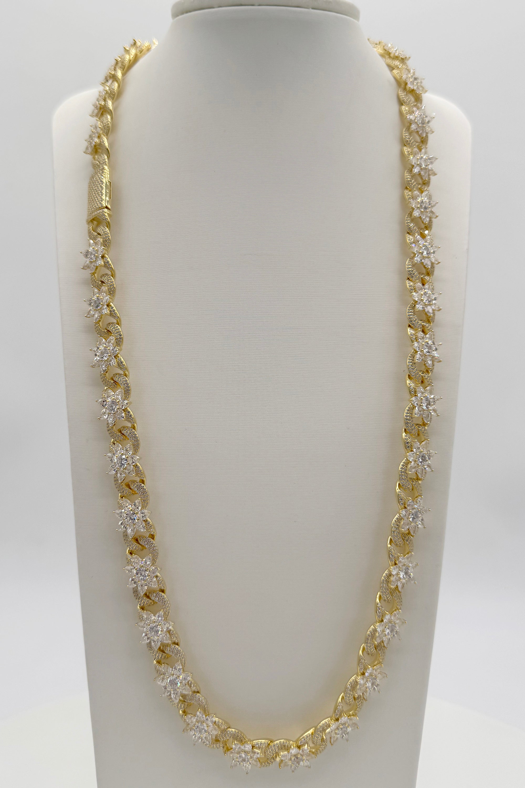 Collar de plata chapada con circonitas realizando forma de flor único de 60 cm peso 156 gr