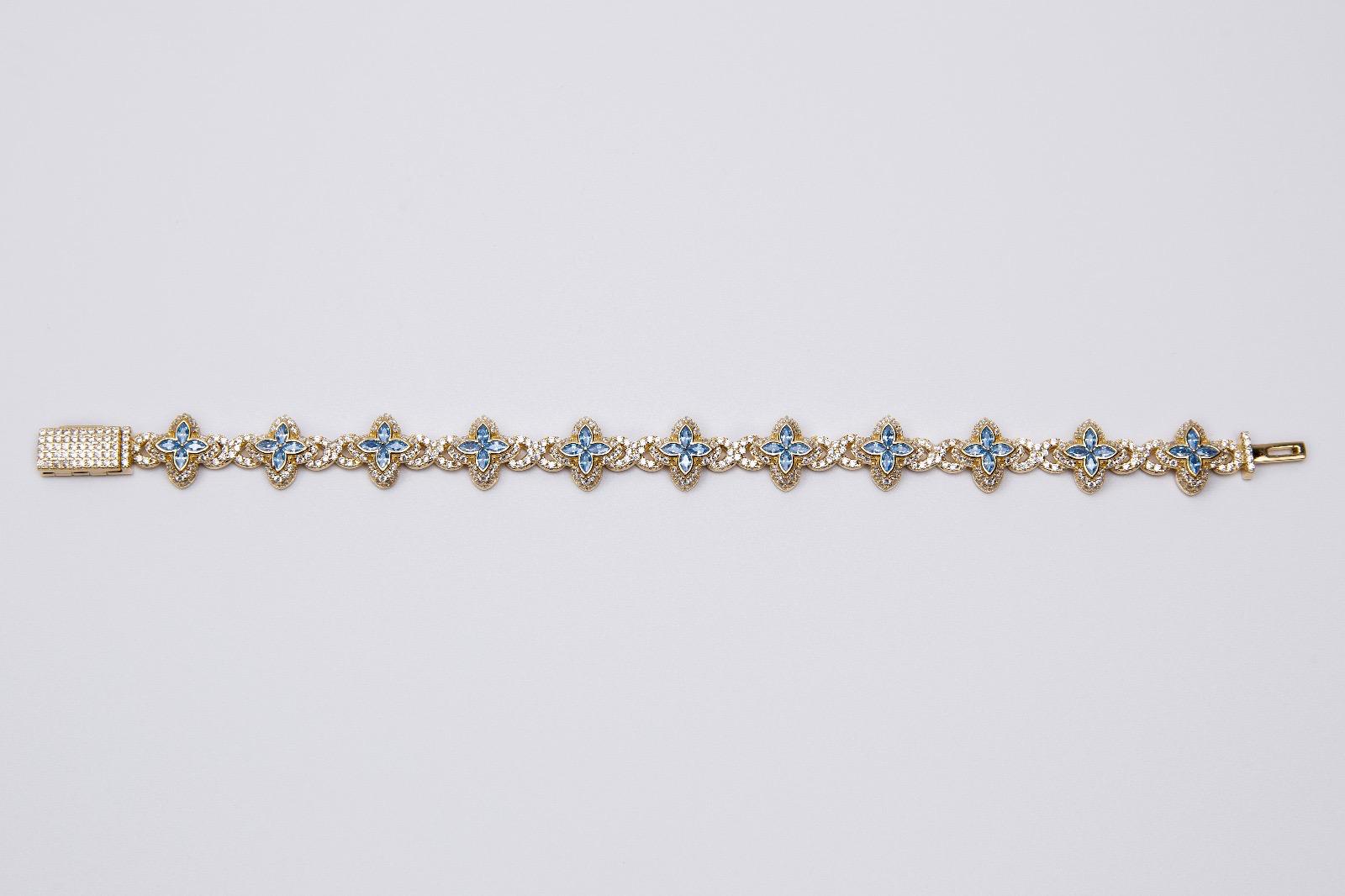 Pulsera de flores, plata chapada en oro 18k y circonnitas, tendencia 2025. 21cm